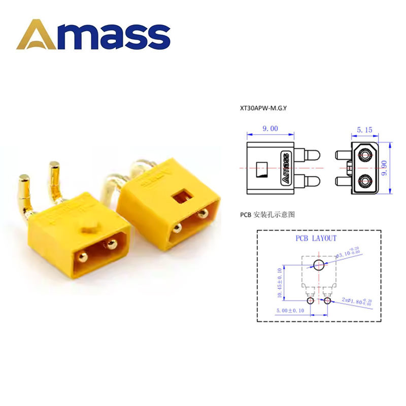 Amass Hot Sell High Quality Genuine XT30APW-M Male Waterproof Connectors With Lock for Soldering Onto PCB Board