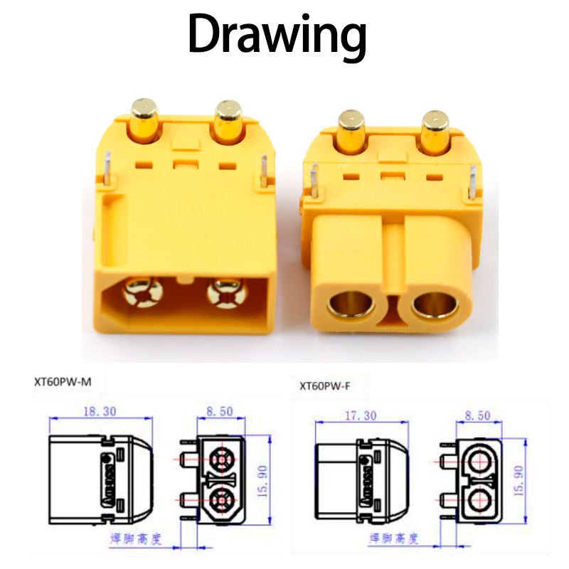 Amass Genuine High Quality Male and Female XT60-PW Plug XT60PW-M XT60PW-F Connector for PCB Distribution Board