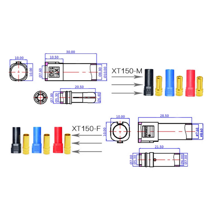 Amass High Quality XT150 XT150-M Male and Female Disc Connector Anti Spark Plug High Current Socket for Remote Control Mod